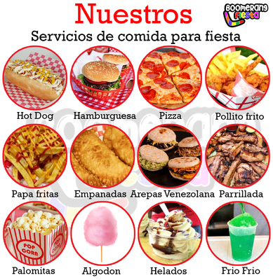 Hot dog Hamburguesa Palomita Algodón Helados Papá fritas Pizza Y más